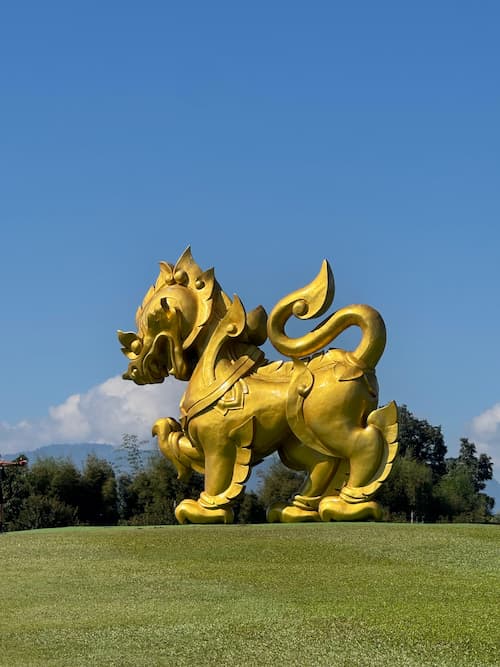 Lungo il percorso ci sono diverse fermate da fare, tra qui quella ad una piccola fattoria con animali da cortile come caprette, maiali, pony, oche e anche capibara! Il parco è di proprietà del noto marchio di birra thailandese Singha, come potrete notare dalla statua dorata con il logo che si trova all’ingresso.