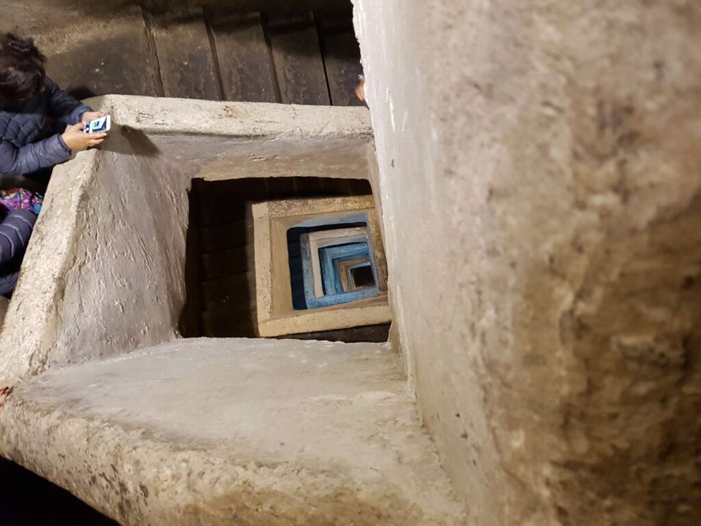 E allora si scendono queste scale a chiocciola. Dall’alto sembrano tantissime, e in effetti si va giù di 40 metri. Subito, si incontra una cappella. La preghiera, si sa, è un potente conforto nei momenti difficili.